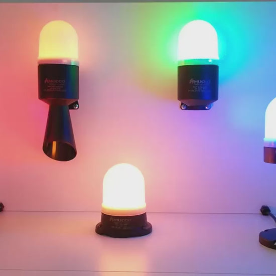 "Feu de signalisation LED RGB avec signal sonore, 12-24 V/DC, ø70mm, pour montage en surface, SNT-74-B-RGB, fabricant MUCCO (Turquie)"